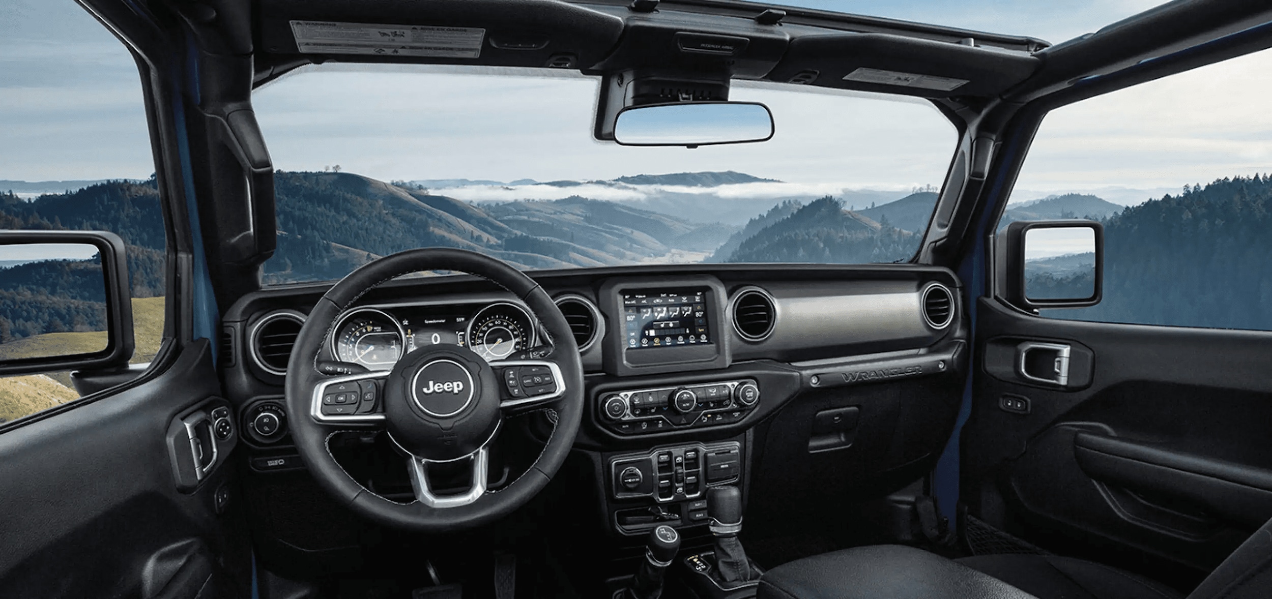 - High Altitude: Starting at $55,410 MSRP, the Jeep Wrangler High Altitude 20" aluminum wheels, body-color hardtop, fender flares, exterior mirrors, door handles, & bumpers. There's also a premium LED lighting package that includes headlamps, taillamps, fog lamps, and daytime running lamps. The interior features a Uconnect 8.4" touchscreen and premium audio system as well as Nappa leather-trimmed interior with caramel accent stitching. For the roof, you can opt for the Sky One-Touch Power Top and Sunrider for Hardtop. Safety features include blind spot monitoring, rear cross path detection, and rear park assist. This trim only comes in a 4-door model.